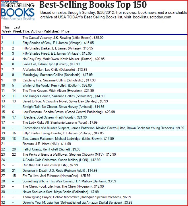 Here it is at #32 on USA Today Best Seller's list (10-4-12)