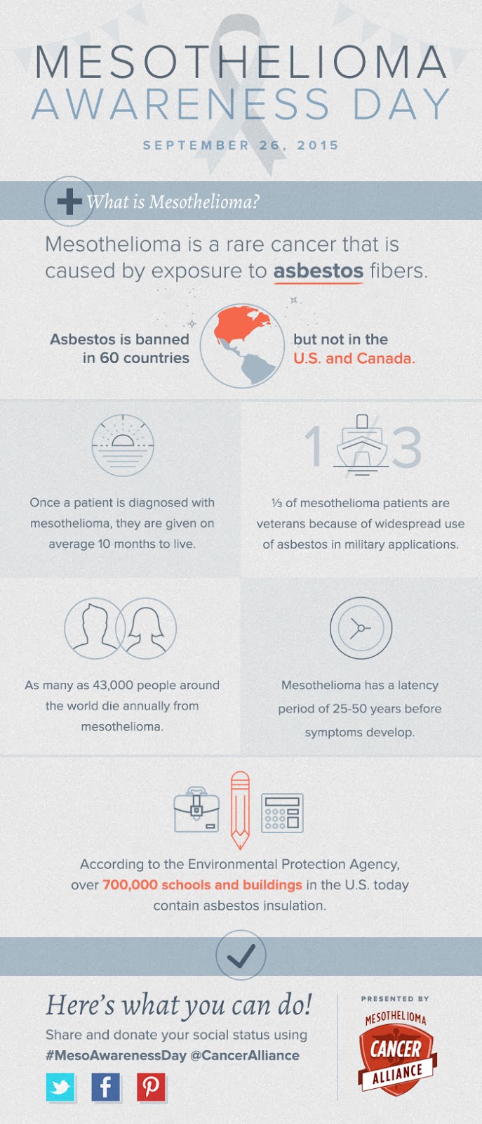 For a little background on Mesothelioma Awareness Day, I celebrate every year by raising awareness for mesothelioma. It's often considered a "silent" disease because it can take decades for symptoms to begin to show and exposure to asbestos very easily occurred because the dangers weren't known. I was exposed by wearing my dad's jacket that had been covered in "dust." :( -- Heather Von St. James