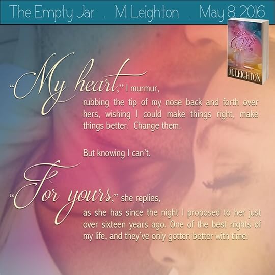 I hope you’ll check out The Empty Jar when it releases on May 8, 2016. I thought Mother’s Day was the perfect day since I believe there won’t be a woman out there who can’t appreciate this story. So, ladies, this one’s for you. May this book leave you with hope, optimism and a profound gratitude for the beauty of true love.