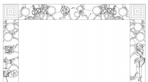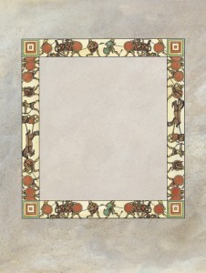 Lastly, I had lots of fun creating the decorative borders at the beginning of each story. The linework for these was drawn directly in InDesign and cloned for symmetry. Again I printed them out on watercolor paper, and I painted them with acrylic. I composited the faux-stone painted texture behind the borders using Photoshop, because I didn't want to accidentally splatter paint over the border art.