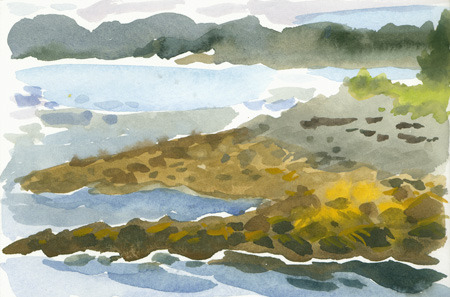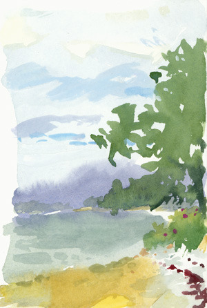 Sunday we just had a short time to paint from the dock. I don’t really like these pieces. I kept the paint-handling loose (maybe even too) loose, but was still basically trying to capture an optical composition. Also I didn’t let the paint get quite heavy enough on the surface.
