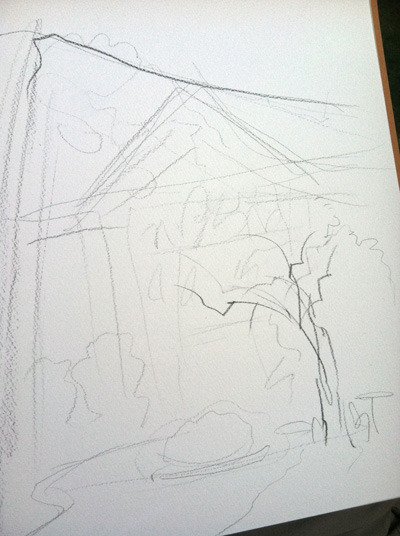 So anyway, we walked over to Harvard and found a spot to sit and draw. This piece took about 40 minutes, with a few breaks to explain things. Since some of my readers may be interested in this topic, I will attempt to capture some of what I told Theo, and walk through the process of how I choose a composition and do a drawing from life.