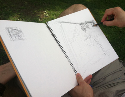 My friend Theo asked me to go out and draw with her sometime and try to teach her how I sketch from life. That seemed like a bit of a tall order, but I was very willing to give it a shot, and I think it actually worked fairly well. I should mention that Theo does have quite a bit of art experience already, so we weren’t starting from scratch.