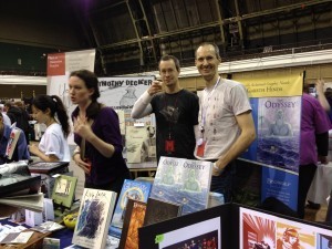 The Decker/Hinds table (pictured: the two artists, plus Tim's wife Mandy doing the actual work)