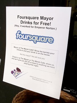 Pioneer Foursquare has a great business page, listing the latest promo actions nearby.