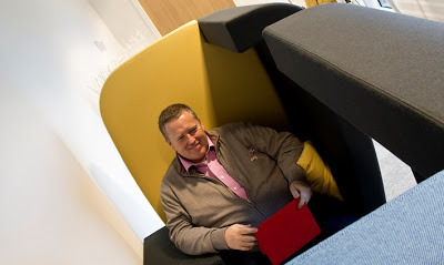 Op uitnodiging van Liesbeth Vereecke en Wim Vanderstraeten, zaakvoerders van het organisatie-adviesbureau Creando, mocht ik een dagje gaan “slimmer werken” in hun gloednieuwe kantoor in het NAC te Houthalen-Helchteren. Dit kantoor werd helemaal ingericht volgens de principes van deze innovatieve werkvormen. Wim vertelt dat bij de inrichting van de werkplek rekening werd gehouden met drie grote pijlers : Samen werken en ontmoeten, geconcentreerd en individueel werken en het opbergen van gemeenschappelijke informatie en goederen.