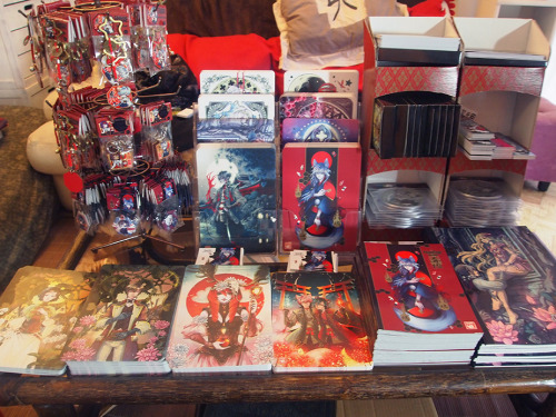 and at last the part of my booth with my products, i’ll try to have some original for sale, but I burnt my hands and they look like mummy hand with all the bandages XD….