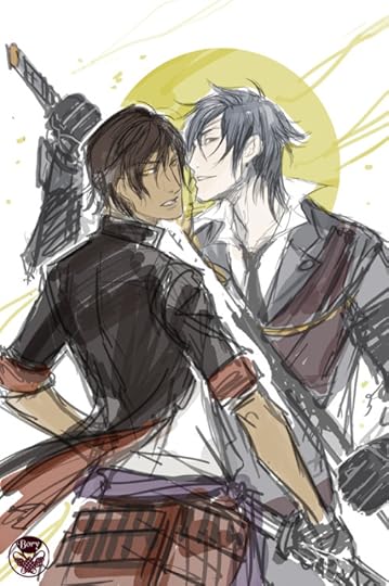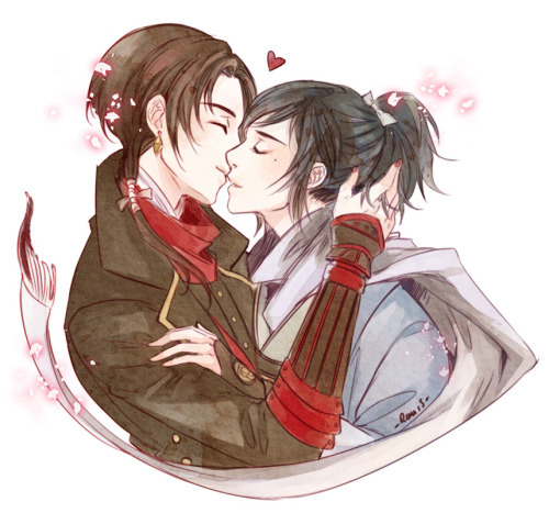 Oh and I’m totally blaming Rann for this sketch! I began to play Touken Ranbu and it was really addicting. I was only going to doodle some Yamanbagiri or Mikazuki to warm up and then bam, OokurikaraXMitsutada showed up!