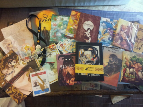 My loot from japan expo XD the only pro merchandising I bought was the sailormoon cute tablet box XD. I only bought artists books. Thank you for everyone who went to our booth. This year was hell, I was very weak due to the heat and had to deal with faintness several times but seeing friends, artists I came to know , fans and very kind cosplayers was like always a real cheer. In these moments I was all coton candies inside♥♡♥♡ love you all!!!