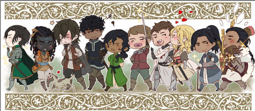 from left to right David @fantomefumeeLeland @fantomefumeeFrère jacques ( dog) @fantomefumeeAlan ( me)Antonis @fantomefumeeJehan/Jayid @aethusaGeoffroy @fantomefumeeEnguerrand @einfrostAmaury @fantomefumeeSuren @eldarianneNaran @cahethel