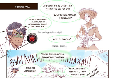 a stupid strip I did mocking my friend inquisitor because she said he was going to stay pure like romance had no interest for her hahahaha XD…. she got her inquisitor to shag the old lady( id didn’t even knew about that before she did) and she ended up romancing the bull so we have all rights mocking her XD with : aethusa ‘s inquisitor