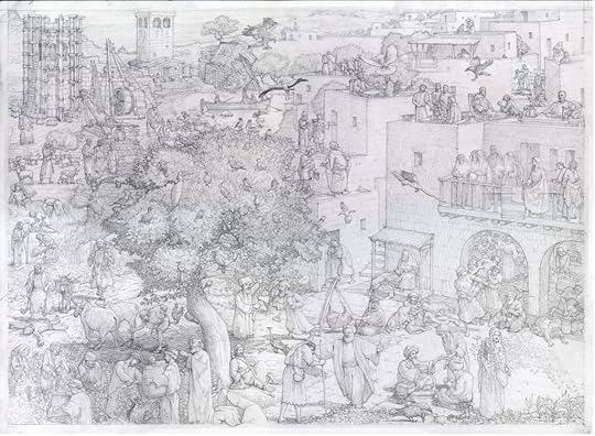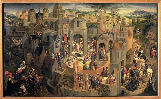I got an email from Joe who said, “I love Hans Memling’s “Scenes from the Passion of Christ” and “Scenes from the Life of Mary”, and Pieter Breugel’s “Hunters in the Snow” and “Netherlandish Proverbs” — in which there are many separate stories/events all occurring at once within a single unified landscape or cityscape.
