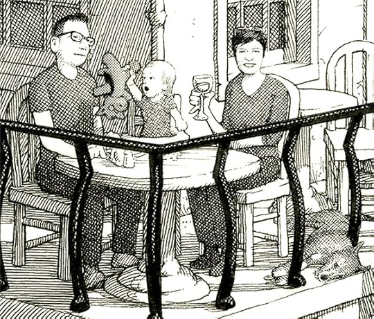 I’m especially amused at how I got Doyle’s family in there with the napping dog next to them and their little girl with the stuffed Cerebus.