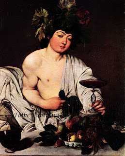 Obviously Caravaggio was using the same model for both of these works of art. I suspect he had a crush on the young man who appears quite at peace with his life of wine and pleasure.