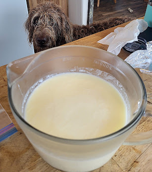 4. Everything that's in the strainer is bits of meat, ligaments, etc. I feed this to my dogs, cats, or meat-eating livestock. What remains in the bowl is tallow.