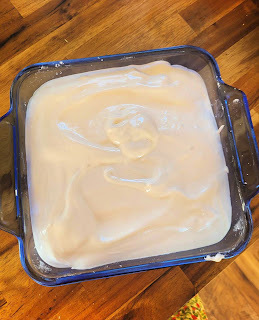 8. Using a spatula lightly greased with the oil, pour the marshmallow fluff into the prepared pan. Allow the mixture to cool completely, uncovered, for at least 3 hours.