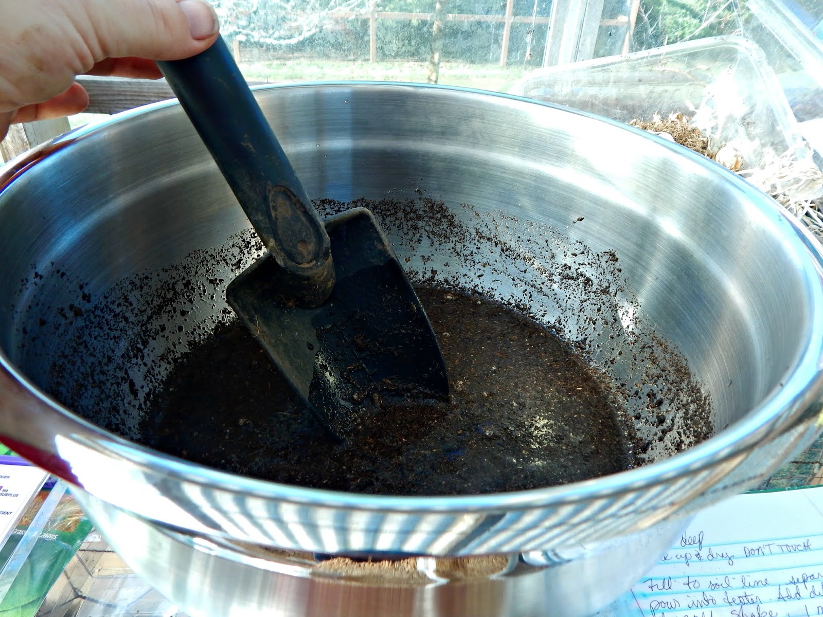 2. Fill a freshly washed, large bowl or jar with 1 part soil and 5 parts distilled water. (Tap or well water may skew the test results.) Stir or shake thoroughly for at least one minute.