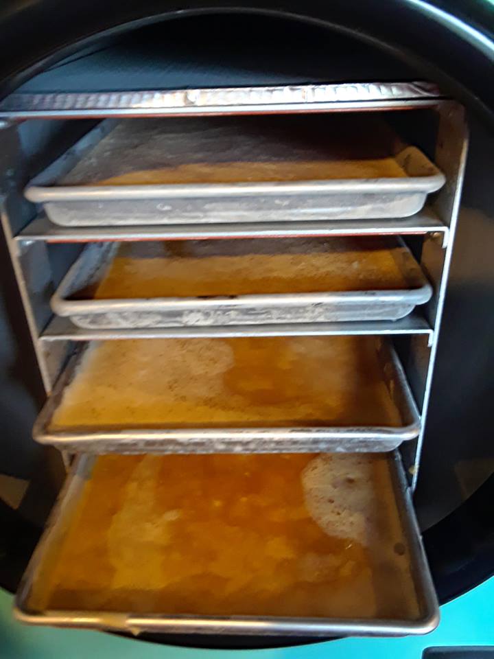 4. Transfer the trays of eggs to the freeze dryer. (You can just pop the trays immediately into the freeze dryer, without pre-freezing in your freezer, but you'll likely spill eggs in the Harvest Right, since it is designed to not sit level.)