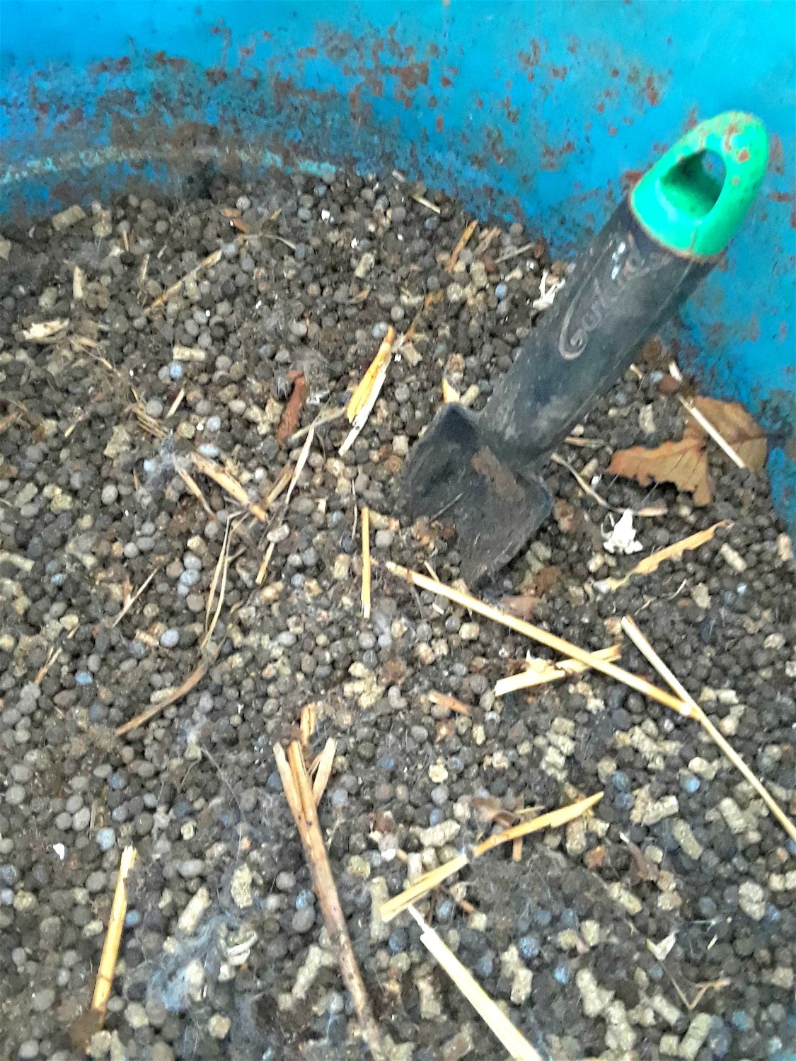 When installing a new plant, I always add a scoop or two of rabbit manure to the hole. You may also sprinkle manure around plants and gently dig it in, then water. I've also sprinkled bunny manure onto the surface of the soil and watered it in as a top dressing, though this is the least effective technique.