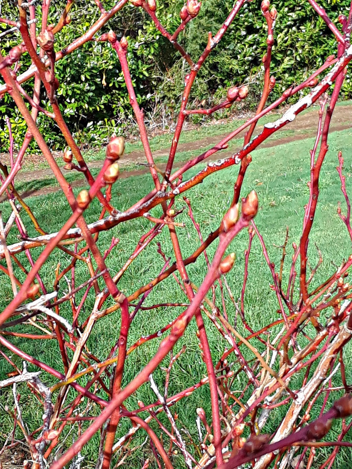 The best time to prune is when the bushes begin forming buds. For me, that's right now. If your winters aren't as mild as ours, you probably won't see buds until early spring.