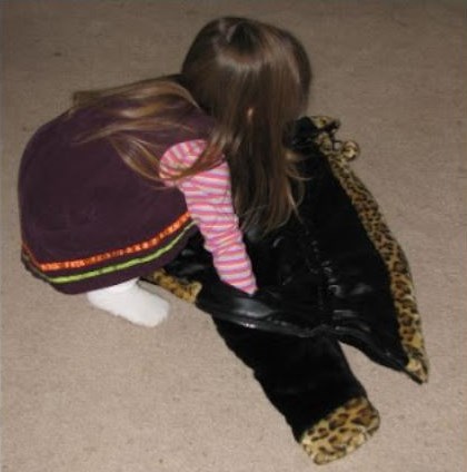 When my mother saw me use this trick with my first born, she said, "Why not just teach her to put on her jacket the normal way?" Well, because toddlers and preschoolers, generally speaking, can't do it the way an adult or bigger kid does. But they absolutely can put on their own jacket by following these simple steps: