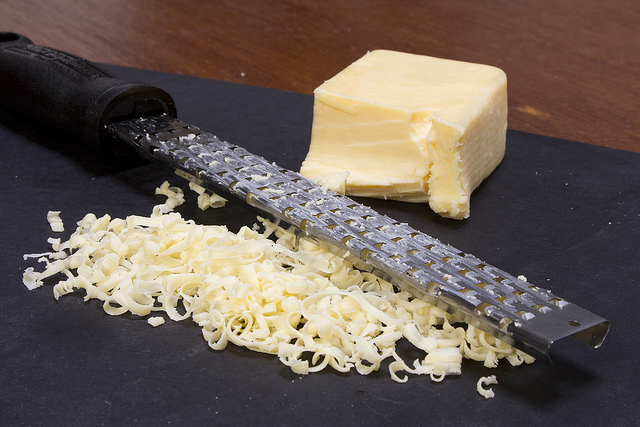 * Grate your own cheese. Do this first because pre-grated cheese has additives that are high in carbs. Do it second because it's almost always less expensive to do it yourself. Hate grating cheese? Buy a food processor! You can also save a lot of money by buying blocks of cheese on sale, grating it, and freezing it.