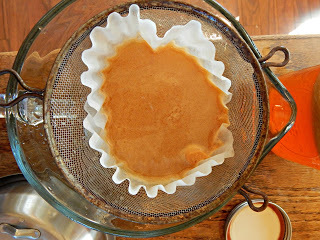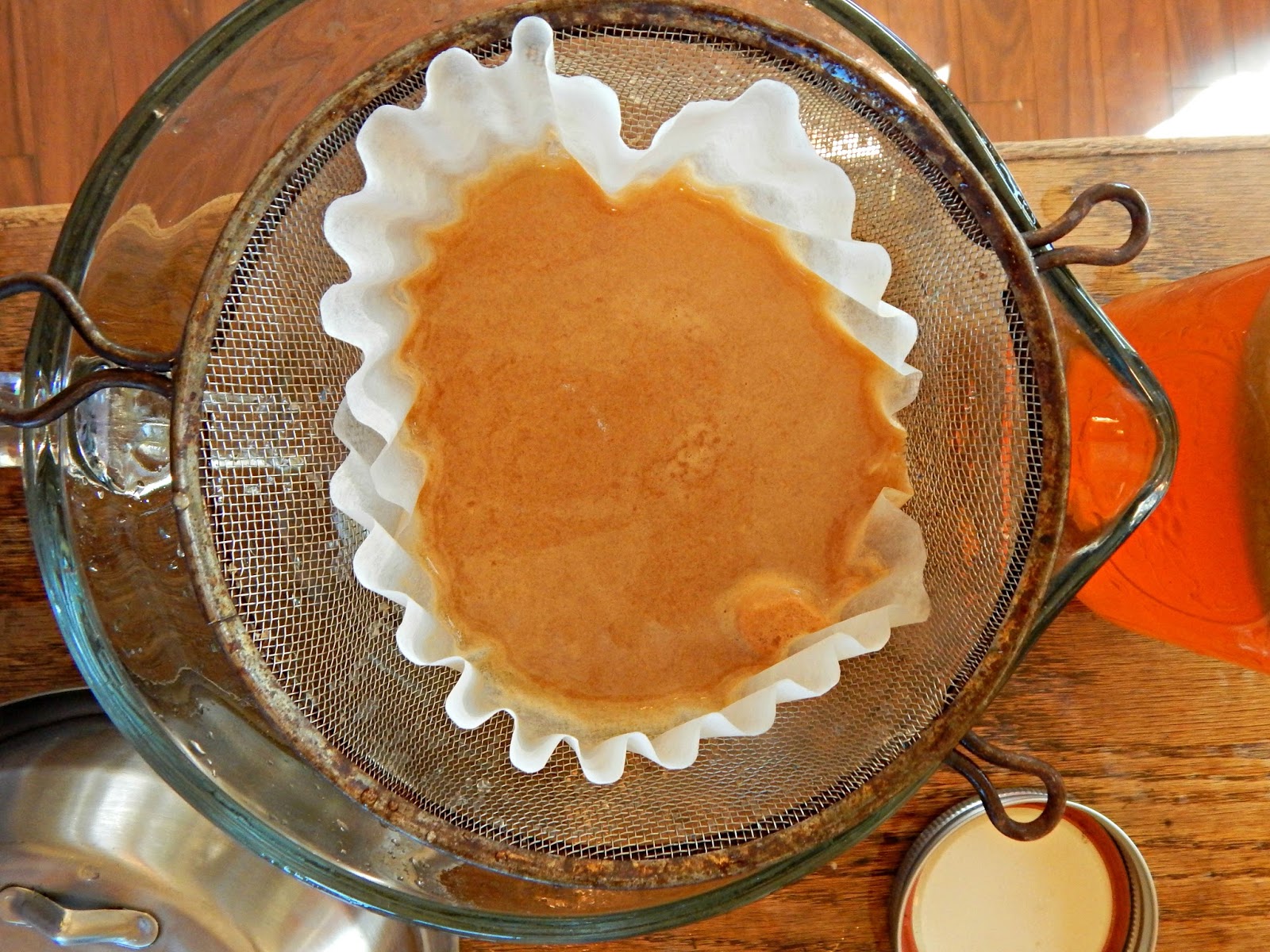 2. Strain the mixture; compost the peels or feed them to your animals.