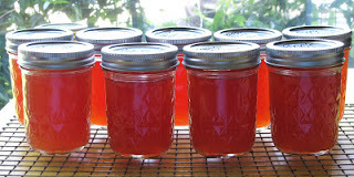 4. Ladle into hot jelly jars, leaving 1/4 inch headspace. Process in a water bath canner for 10 minutes.