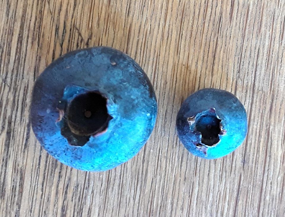 The biggest blueberry I've ever seen (next to a normal sized one).