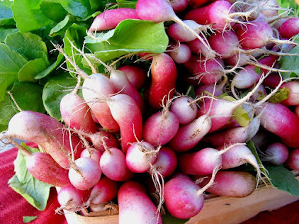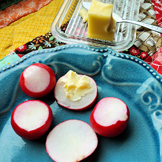 For a breakfast treat, the French have a centuries-long tradition of eating sliced, raw breakfast radishes with sea salt and quality butter. It may sound really weird, but I assure you, it's yummy...and the butter removes the pepperiness of table radishes! I recommend picking the radishes just before serving. You may also enjoy radishes prepared in this manner served on top of toast.