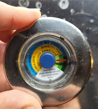 The style of steam canner currently tested safe by sources other than the manufacturer feature a gauge on the lid that faces the ceiling. It's important to read this gauge correctly, or you may not end up with a finished product that is shelf stable - but it can also be tricky to ensure you are looking straight down on the gauge, eliminating parallax. To get around this, my 5'2" self has to stand on a stepping stool, but even tall people should make it a point to carefully look straight down on the gauge. I do not recommend using a mirror or your phone to read the gauge, due to parallax.