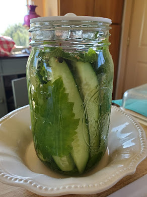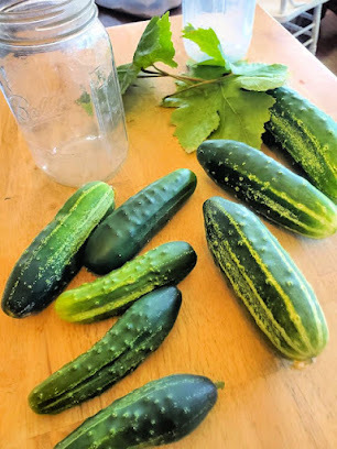 I always include one freshly picked grape leaf in every jar of pickles; the tannins in the leaves aid with crispiness. Other leaves said to work just as well as grape leaves include fresh oak leaves, fresh horseradish leaves or root (grate the root first), fresh raspberry or blackberry leaves, dried bay leaves (use 2 to 4 per quart jar), or black tea (1/2 teaspoon per quart size jar).