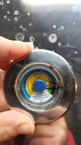 5. Begin your processing time when the indicator on the gauge reaches your Sharpie-marked line. Adjust the burner as needed to keep the indicator on this line, but keep stove heat to a minimum.