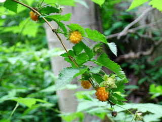 * Took the kids wild berry picking this afternoon, when suddenly the dog started growling and barking, then began pulling me firmly the opposite direction (I was holding his leash). Yep, that's why we got ourselves a guardian dog! I'm sure he kept us from bumping into something we wouldn't have wanted to bump into. My first thought was a bear bed - but he's passed by fresh bear beds before without freaking out. Then I thought a bear itself - but it should have been sent crashing through the woods by the dog's barking, and we didn't hear that. Hubby thinks it was a cougar...which gives me the shivers. Whatever it was, the dog didn't like it. He spent the rest of the day very jumpy, and he kept staring in the direction of whatever it was, growling very low. I've never seen him like that before.