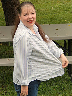* To paraphrase a blog title, fats make your pants fall off...and turn your shirts into tents, too! When I started the keto lifestyle just before Christmas, I couldn't button up this shirt. I'm a little bummed that certain weird foods are spiking my blood sugar; I'm a lot sicker than even I realized. But I'm SO happy with the keto lifestyle. My blood sugar is still a thousand times better, and I feel a thousand times more energetic, too. Plus...shirt tents. (Check out a recent newspaper article on why eating fat helps you lose weight.)