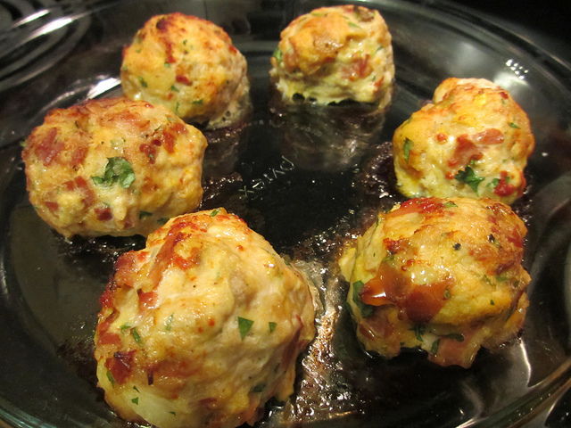 Breakfast - 2 egg "muffins" (basically, scrambled eggs baked in muffin cups; add chopped green bell pepper, some chopped bacon, and some cheese.)