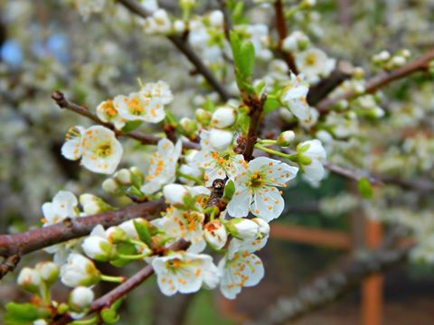 * The plums and pear tree are blooming, and I have winter sowed tomato seedlings popping up! It's spring, my friends, and I am soooooo glad! Is my garden bed ready yet? No, not quite. But the trees are down, and my hubby is working hard on cutting and stacking all that lovely wood for next winter's use. I'm sure I won't have the garden of my dreams this year, but if there's one thing I've learned about homesteading - really, life in general - it's that baby steps, rather than giant leaps, usually work out better in the end.
