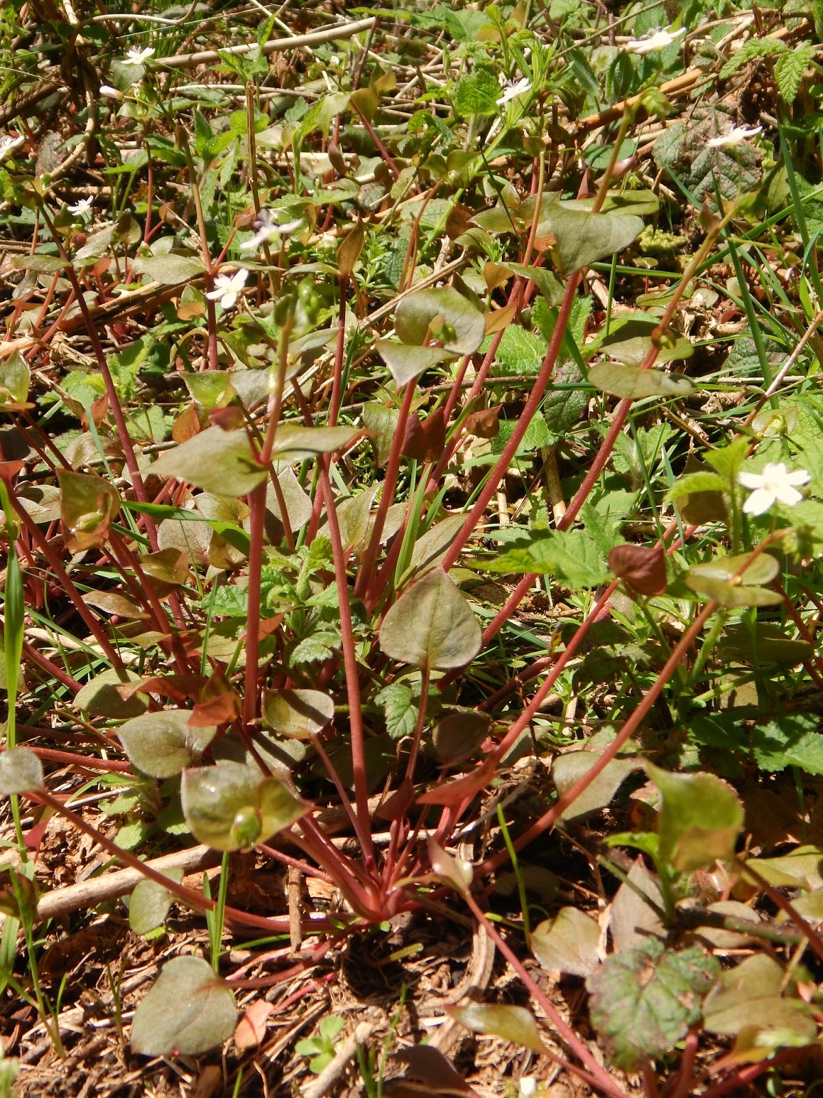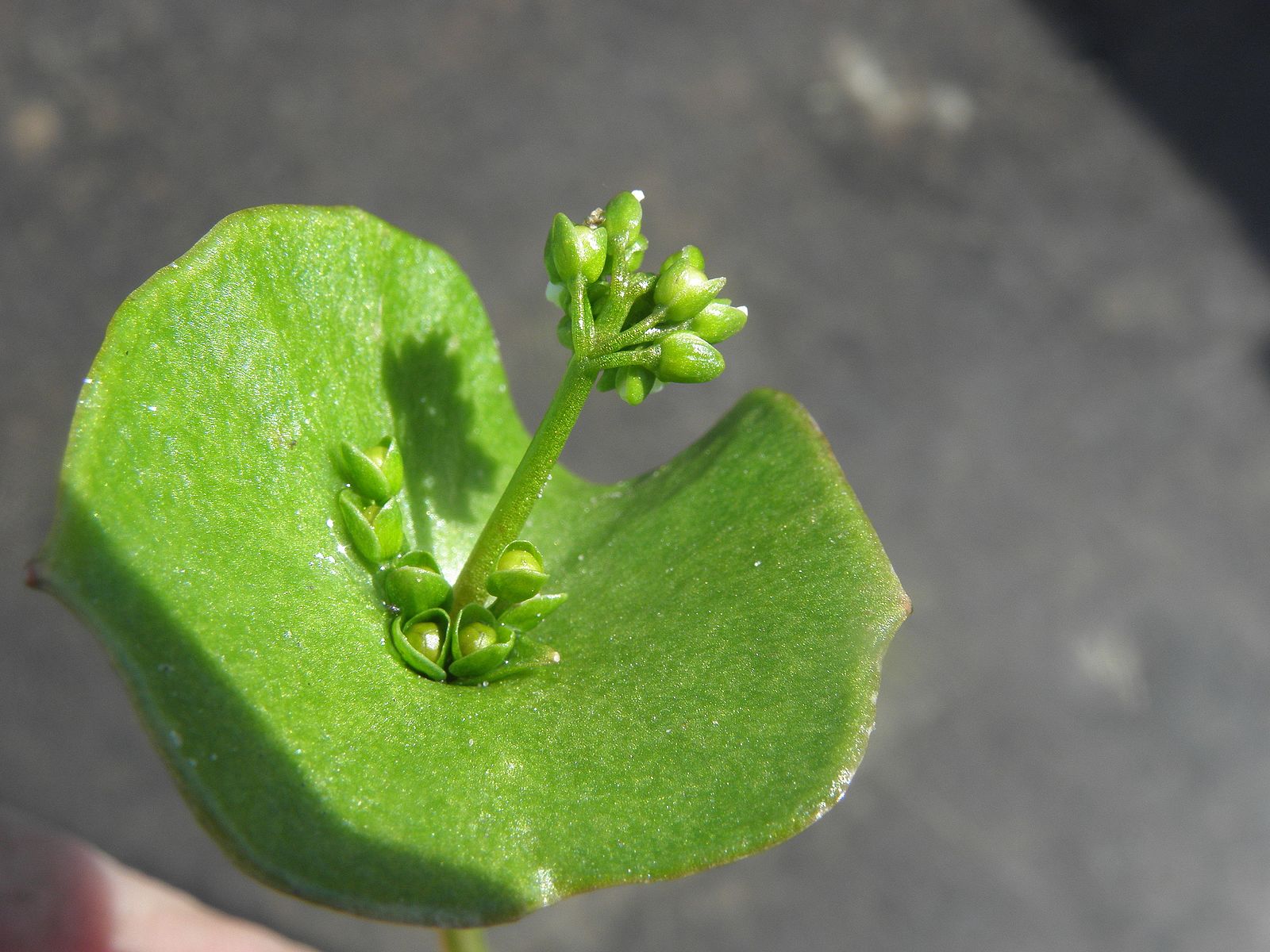 There are two main types of Miner's Lettuce in the United States. The most common, if foraging guidebooks are to be believed, is called simply "Miner's Lettuce." According to most sources, it's not native to this continent, but is believed to have been introduced to North America from Europe in 1794. It's sometimes called Indian lettuce, Cuban lettuce, winter purslane, miner's green, spring beauty, or it's Latin name, Claytonia perfoliata. It grows primarily in western North America, especially in coastal or mountainous regions, from Alaska and British Columbia down through Arizona and Central America. It can also be found in the interior western states. It tends to grow in great patches and has distinctively round, lily pad like leaves. This plant loves moist areas and tends to grow abundantly from late winter to mid-spring, notably in shady, wooded areas. It particularly loves disturbed areas of soil, especially if the area has recently seen fire.