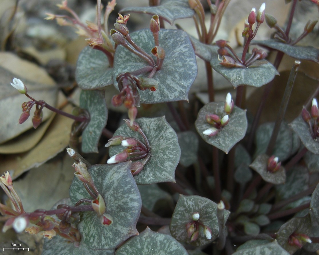 The second type of miner's lettuce is commonly called "Siberian Miner's Lettuce," or sometimes Siberian spring beauty, Western spring beauty, candy flower, pink purslane, or it's Latin name, Montia sibirica. It's native to both Siberia, and according to some sources, North America. (Other sources have the plant introduced to North America in the 18th century.) It grows over much of western North America, including Alaska down to British Columbia, down to California and Montana, and then west to Utah.