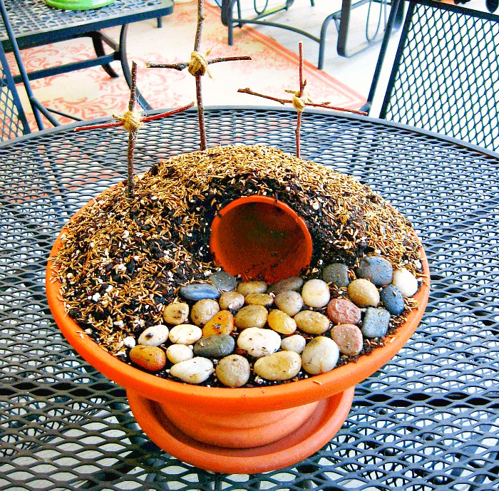 * Empty Tomb Garden Pot. If you have a green thumb, grab a pot, some small rocks, and some grass seed to create a lovely Easter display.