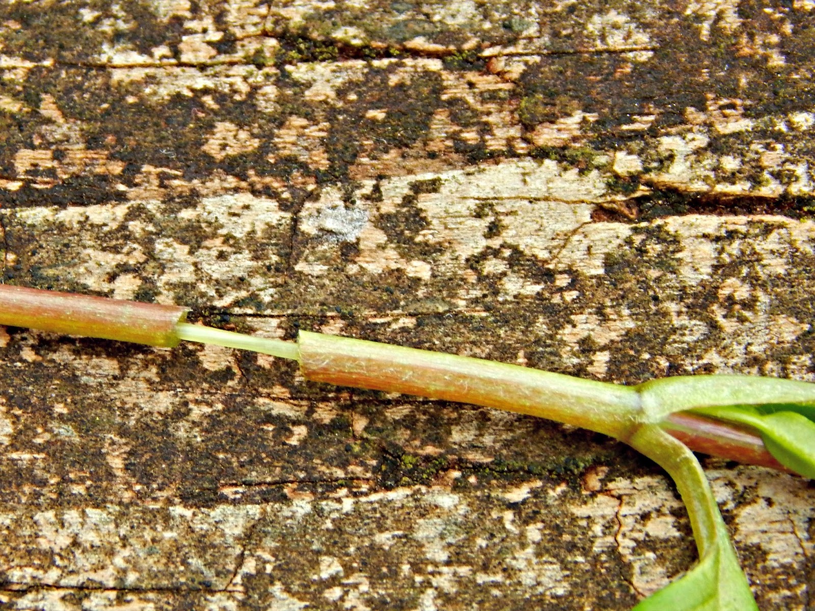One final test to know whether or not you've got chickweed: Bend a stem and turn each part of the stem in the opposite direction. Gently pull; the outer part of the stem will break and separate, but an inner part will not break. In fact, it will stretch a little.