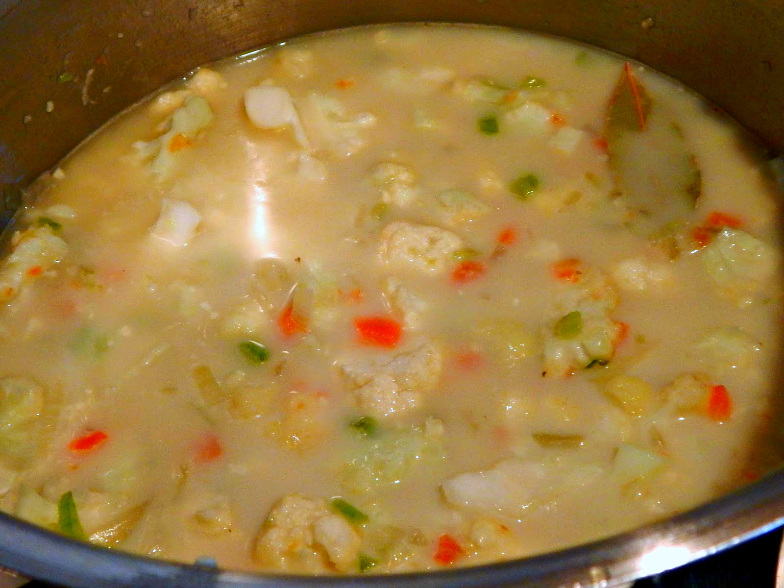 2. Add the cauliflower and bay leaf. Saute, stirring often, for about 4 minutes.
