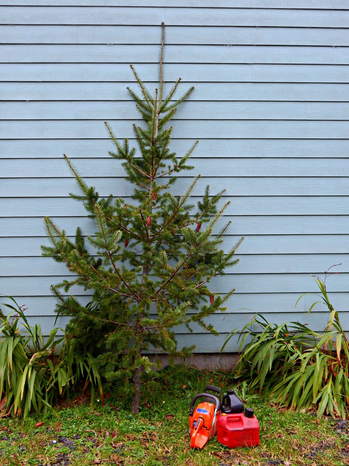 * Yesterday, we cut our Christmas tree...right on our own property. Now that was fun! It even has cones attached; we're leaving them in place, since most of our Christmas stuff is still packed :) Bonus: It was too close to the house, so that's another chore taken care of. Plus we got a little firewood out of the deal.