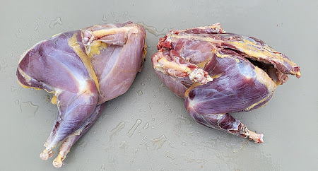 A lot of folks on Facebook wondered why the meat was so reddish. This is not because I didn't drain the blood from them. There are actually several factors at play here: