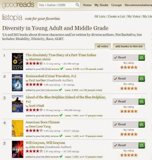 This is a partial reblog of an article on YahooAccording to the Huffington Post, libraries are working to bridge the cultural divide in readers because a "child's lack of exposure to other cultures, [can fuel] intolerance and cultural invisibility."Diversity in Young Adult and Middle Grade books got a huge boost this week from a group of authors, publishers, and bloggers who declared that it is "the time to raise our voices into a roar."The Tumblr movement dubbed #WeNeedDiverseBooks was aimed at raising awareness around diversity in children's literature. The campaign garnered support from ... (please click through here to see the full article) Thank you.