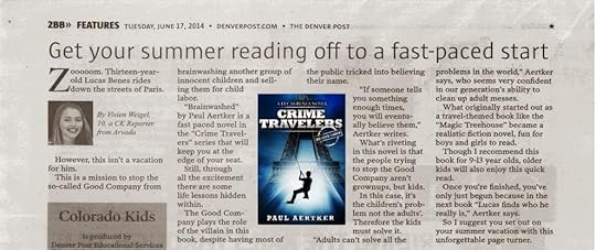 Zooooom. Thirteen year old Lucas Benes rides down the streets of Paris, France. However, this isn’t a vacation for him. This is a mission to stop the so-called Good Company from brainwashing another group of innocent children and selling them for child labor. “Brainwashed” by Paul Aertker is a fast paced novel that will keep you at the edge of your seat. Still, through all the excitement there are some life lessons hidden within.The Good Company plays the role of the villain in this book, despite having most of the public tricked into believing their name. “If someone tells you something enough times, you will eventually believe them,” Aertker says.What’s riveting in this novel is that the people trying to stop the Good Company aren’t grownups, but kids. In this case, it’s the children’s problem not the adults’. Therefore the kids must solve it. “Adults can’t solve all the problems in the world,” Aertker says, who seems very confident in our generation’s ability to clean up adult messes.What originally started out as a travel-themed book like the “Magic Treehouse” became a realistic fiction novel, fun for boys and girls to read. Though I recommend this book for 9-13 year olds, older kids will also enjoy this quick read. Once you’re finished, you’ve only just begun because in the next book “Lucas finds who he really is,” Aertker says. So I suggest you set out on your summer vacation with this unforgettable page turner.Flying Solo Press: 10 year old journalist at the Denver Post pens the...: This is an article by a 10-year-old journalist with the Denver Post. Check it out: http://nextgen.yourhub.com/article/pa......