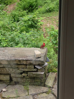 Here in Mainea bright red cardinal visits