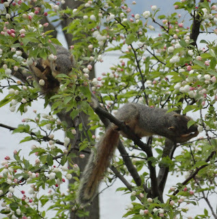 but outside my windowthere aresquirrels in the crabapplehappily munchingon blossoms