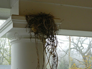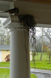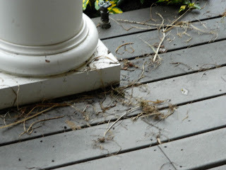 and usually the mess-nest fallsthree or four or five timesbut they pick all the mess back upand slop it up against the pillarwhich isn't nearly wide enoughfor a secure nest