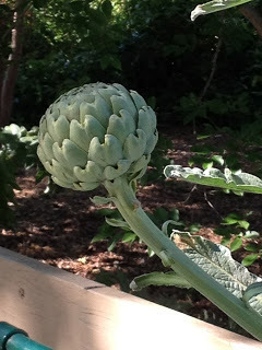 I'd never before seen an artichoke growingand it made me laughto see it so boldly there.